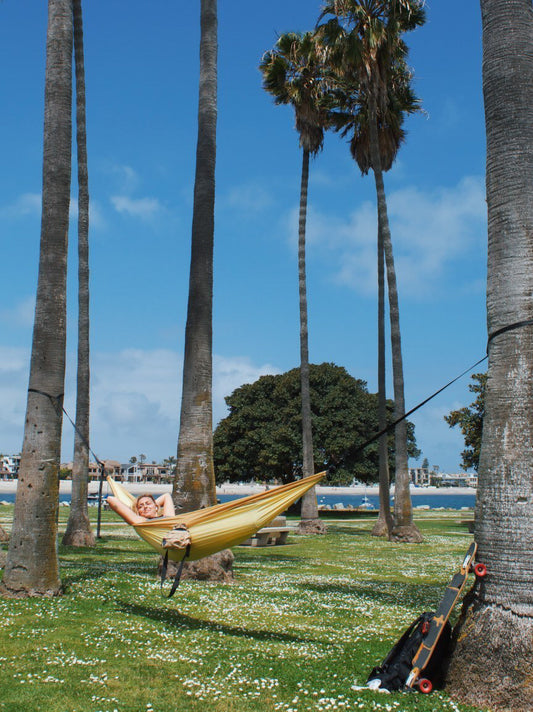Meaning sky or highest heavens, the Empyrean will make you feel like you are on a boat sailing through the air. Our signature design is the easiest system to carry and set up, meaning that you are spending more time hanging and less time fiddling with equipment. When you are finished, stuff the hammock away and walk the streets in a fashionable cross-body bag.